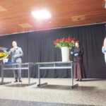 Die Aula wurde festlich geschmückt, wie jedes Jahr. Durch das Programm führte Frau Gaede.