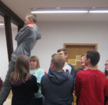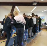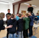 Die Nachbereitung des Projektes „Wir sind stark“ fand vier Wochen später statt und wurde erneut von Herrn Klinger, Frau Fösten-Kramer sowie von Frau Zabielski durchgeführt. Im Stuhlkreis berichteten die Schülerinnen und Schüler davon, an welche Übungen aus dem Projekt sie sich noch erinnern konnten. Dabei wurde der Sinn der einzelnen Übungen erneut benannt. So traf besonders das Spiel „Auf Stühle stellen“ auf eine besonders hohe Zustimmung. Ein Spiel, dass die ganze Klasse einbindet und Vertrauen sowie Verantwortung von jedem einzelnen Schüler verlangt.