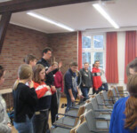 Angekommen in der Kulturstätte, in die ebenfalls zahlreiche andere Schülerinnen und Schüler aus anderen Schulen strömten, machten die vier Klassen der OBS Harpstedt erst einmal eine Frühstückspause.