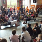 Zunächst wurde der ESC-Sänger von den Schülern zurückhaltend begrüßt, was sich nach einem freundlichen Warming-Up mit seinem erfolgreichen Song „She‘s got me“ änderte. Schließlich war die Choreografie, die alle Schüler nachtanzen sollten, der letzte Vorbote für einen unterhaltsamen Schulvormittag.