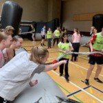Im Rahmen ihres Freiwilligendienstes organisierte Virginia kleine Hackmann dieses Turnier, um nicht nur eine Abwechslung zum Schulalltag schaffen zu können, sondern vor allem den Sport in den Fokus zu stellen. Gemeinsame Herausforderungen stärken das Gemeinschaftsgefühl und den Zusammenhalt untereinander. Damit der sportliche Wettkampf gelingen konnte, trainierten die Klassen im Voraus fleißig, um so ihre Geschicklichkeit und Geschwindigkeit auszubauen. Am ersten Tag des Turniers traten die Klassen der Stufen fünf bis acht gegeneinander an, während es am Freitag, den 07.02.2025 die Klassen der Stufen neun und zehn waren. Die Stimmung in den Sporthallen der Oberschule Harpstedt war ausgelassen. Die Mitschüler*innen feuerten sich gegenseitig an und unterstützten sich. Des Weiteren stand der Sanitätsdienst an beiden Tagen zur Verfügung wobei dieser, glücklicher Weise, nicht zum Einsatz kam. Das Highlight stellte anschließend das Spiel zwischen einer Best-of-Mannschaft aus der Schülerschaft und einem Team aus Lehrkräften dar.