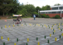 Die 5. Klassen müssen einen Geschicklichkeitsparcours des ADAC mit dem Fahrrad absolvieren, während sich die Sechstklässler auf einen Rundkurs durch Harpstedt begeben. Dort achten dann Streckenposten darauf, dass sie die Verkehrsregeln einhalten.