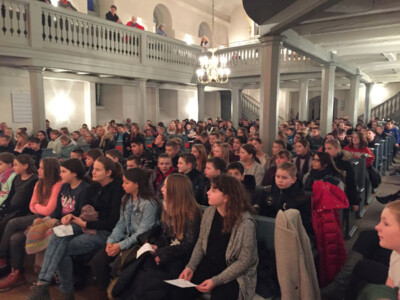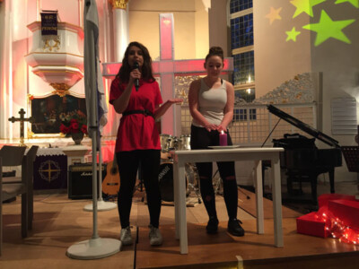 Die SV trug in perfektem „Denglish“ ein erheiterndes Gedicht vor und auch die Radio-AG erfreute die Zuhörer mit einer modernen Version der Weihnachtsgeschichte.